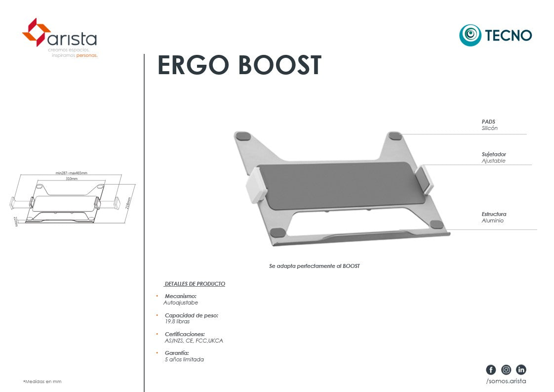 Ordena tu escritorio y gana productividad: eleva tu laptop con el accesorio Ergo (ideal para combinar con los brazos para monitor Boost)
